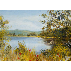 An original miniature summer landscape painting of Dare Valley Park in the ACEO, Artist Trading Card format of 2.5 x 3.5 inches. This miniature is an acrylic painting on primed mountboard. It is a one off original in a series of Dare Valley Park, this one is No.1. Dare Valley Park is a beautiful park near Aberdare in the South Wales Valleys, UK.