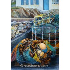 A holiday in Cornwall inspired this painting from one of the many small fishing villages there. It was the combination of colours as much as the fishing nets and lobster pots that caught my eye.